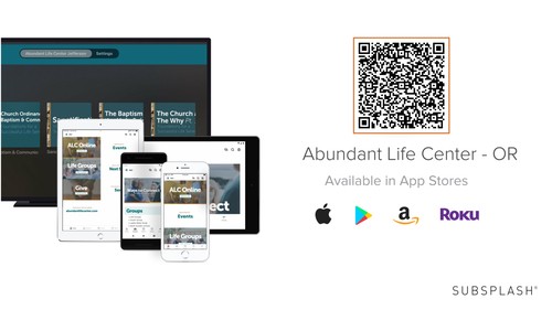 Download and log into our app today so you can watch live, find ways to connect, see event details, and give securely. Questions or issues with the app? Contact us at 541-327-2112 or office@abundantlifecenter.com